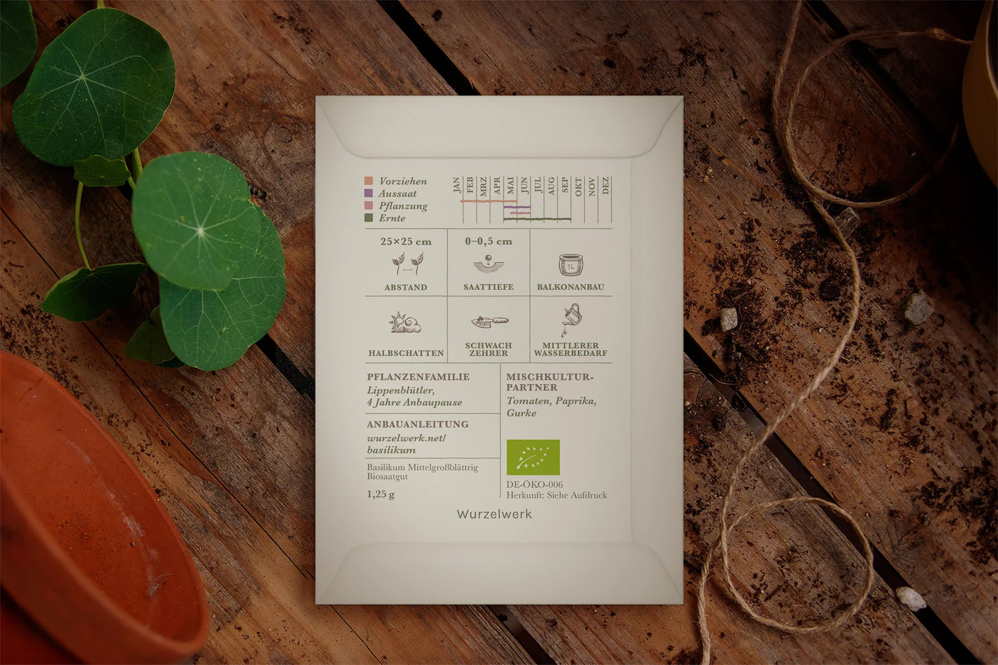 Du erhältst Biosaatgut nach EU-BIO-Richtlinien. Es handelt sich um eine samenfeste Sorte, die im eigenen Garten nachbaufähig ist.